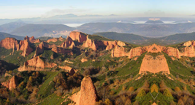 Las Médulas es un entorno paisajístico español formado por una antigua explotación minera de oro romana situado en las inmediaciones de la localidad homónima, en la comarca de El Bierzo, provincia de León, comunidad autónoma de Castilla y León. Está considerada la mayor mina de oro a cielo abierto de todo el Imperio romano.
